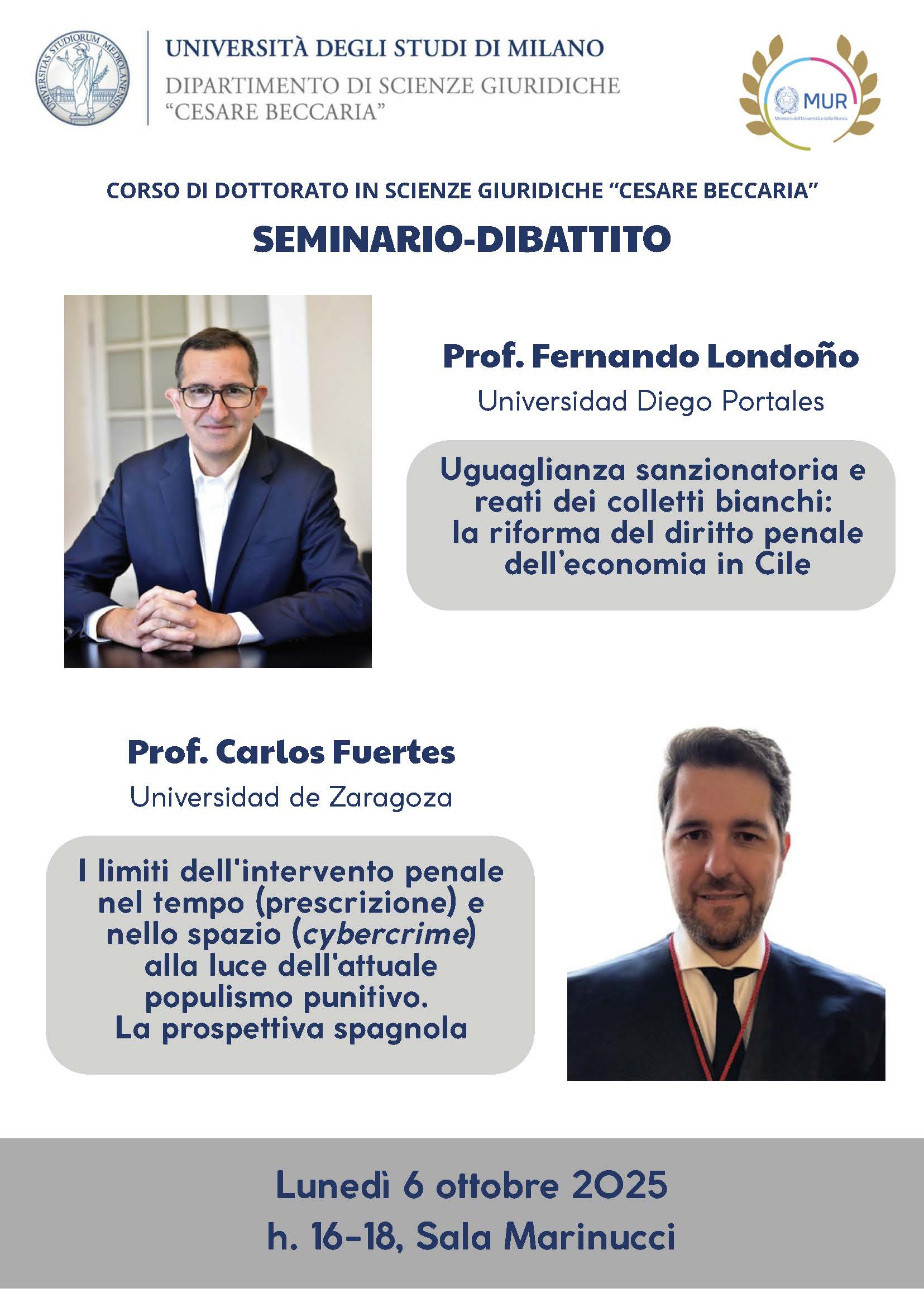 06/10/2025: Corso di Dottorato in Scienze Giuridiche «Cesare Beccaria»: Seminario-dibattito.