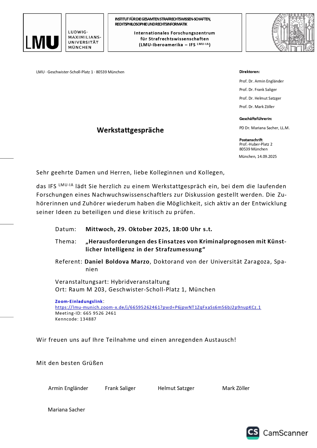 29/10/2025: Conferencia en el Internationales Forschungszentrum für Strafrechtswissenschaften LMU Iberoamerika – IFS.